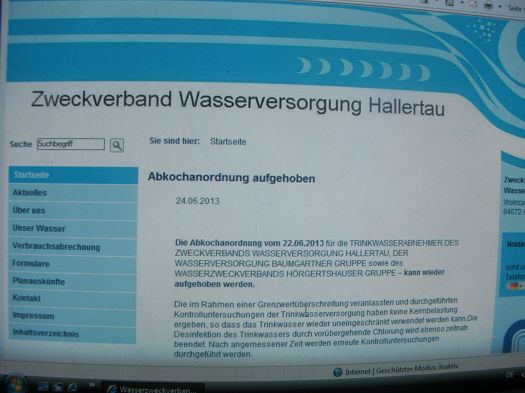 Entwarnung für die Trinkwasserabnehmer des Zweckverbandes Wasserversorgung Hallertau: Die Abkochanordnung wurde aufgehoben. Das Trinkwasser kann wieder uneingeschränkt verwendet werden.