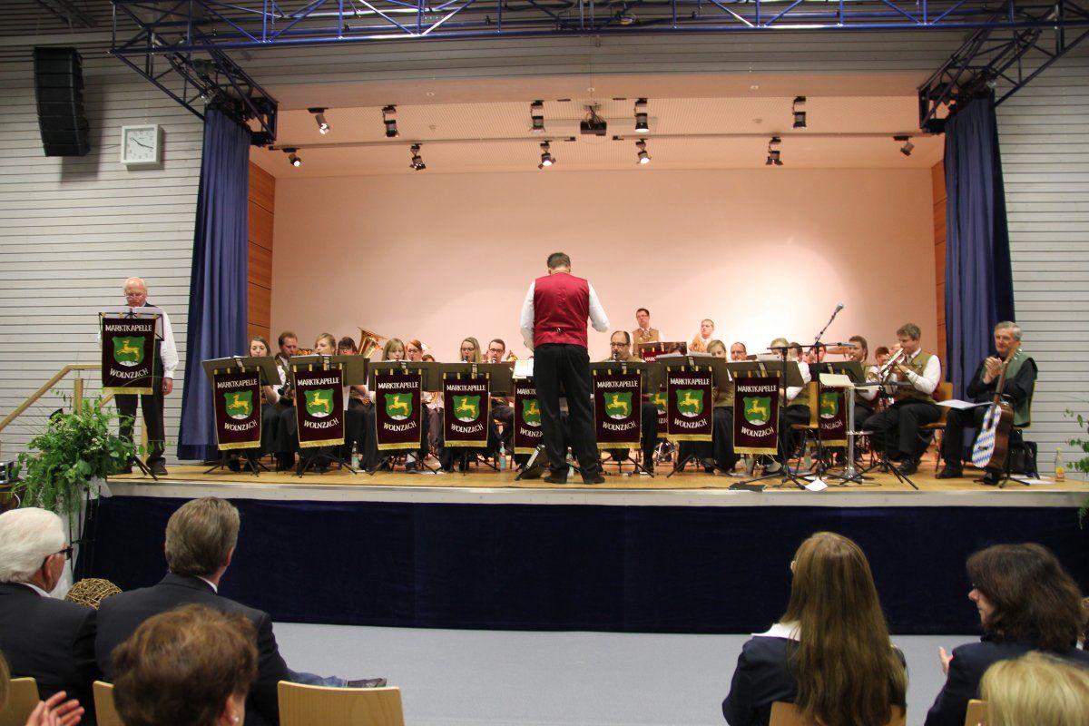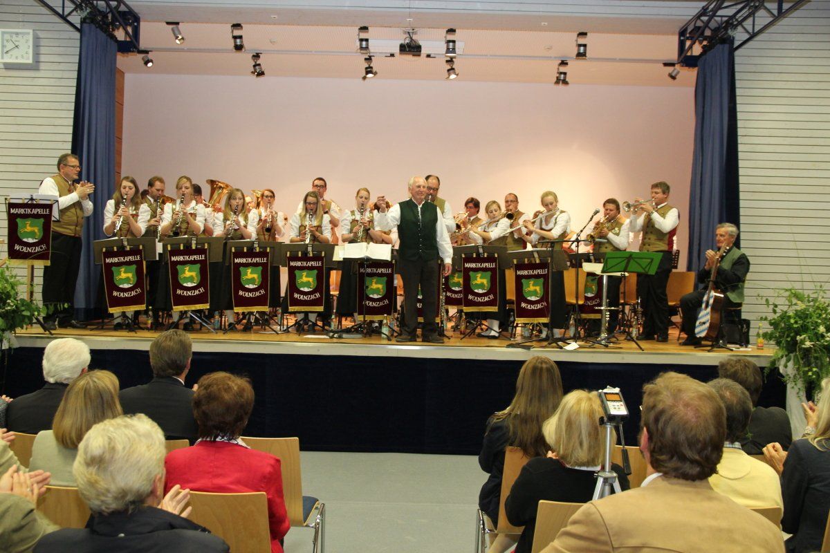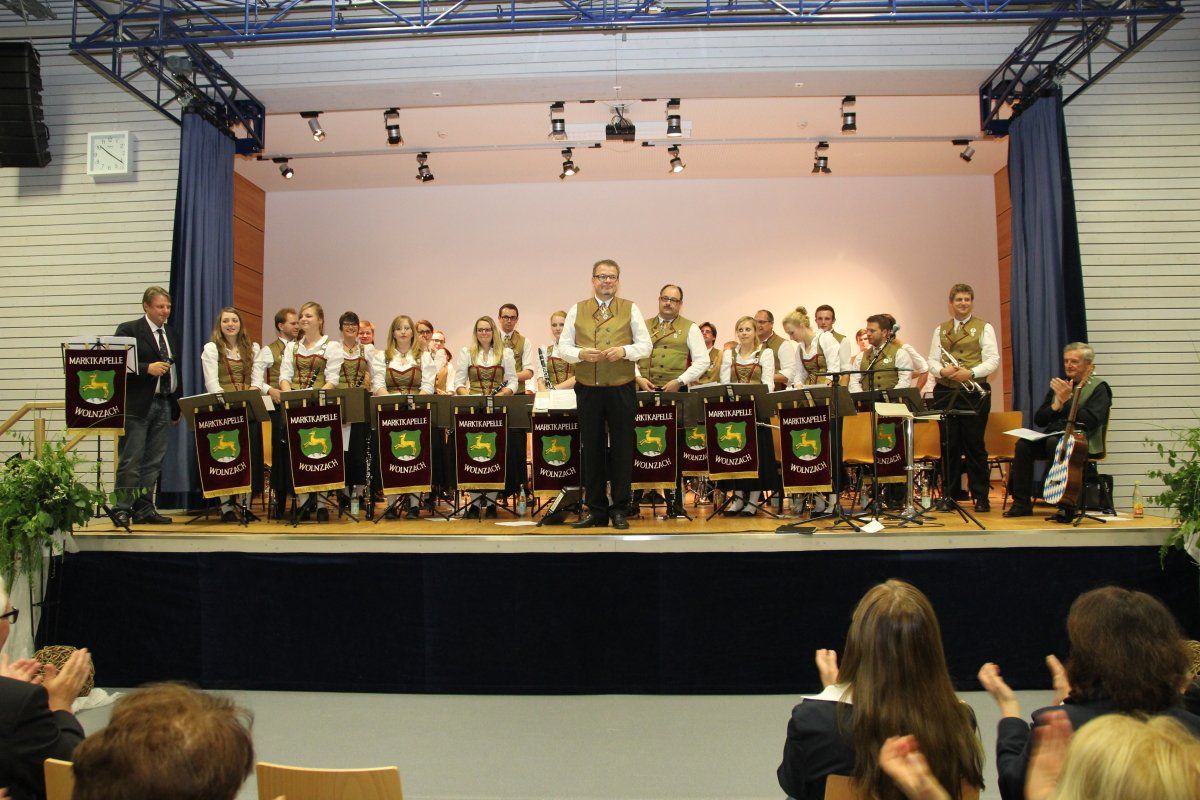 Während nun die Marktkapelle mit zünftig bayerischer Volksmusik und Lieder aus Böhmen und Tirol das Publikum begeisterte, sorgte am Ende Fitz Winter selbst mit seinen G’stanzeln für den einen oder anderen Lacher. Dabei ließ er mit seiner gewohnt spitzen Zunge die Geschehnisse in Wolnzach Revue passieren, und widmete sich dabei nicht nur dem Turnhallen-Neubau, sondern auch dem neuen Kupferdach der Wolnzacher Kirche. Vielleicht sollte man in Zukunft einen Zahnarzt an den Planungen beteiligen, kommentierte er die derzeitige Situation.