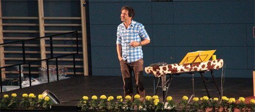 Der Heinrich ist ja eigentlich ein dahergelaufener Scheyrer." stellte Chris Böttcher, Bayern3 Comedian und Musiker, gleich zu Beginn seines Auftritts anlässlich der Neueröffnung der Reichertshausener Ilmtalhalle fest. Und er ist Profi genug, dass er nicht nur ein Standardprogramm abspulte.