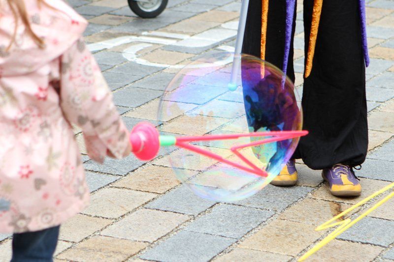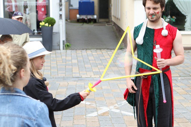 Am Samstag demonstrierten sie in Pfaffenhofen vor allem die Grundelemente ihrer Shows. Die Auftritte waren vor allem für Kinder gemacht, die auch selbst mitmachen durften. So freuten sich die Kleinen beispielsweise über riesige selbstgemachte Seifenblasen, die quer durch den Wochenmarkt flogen.