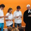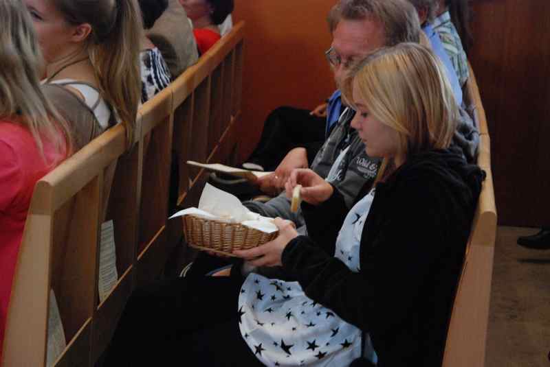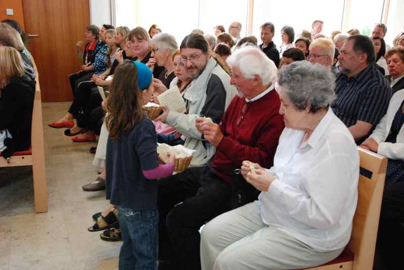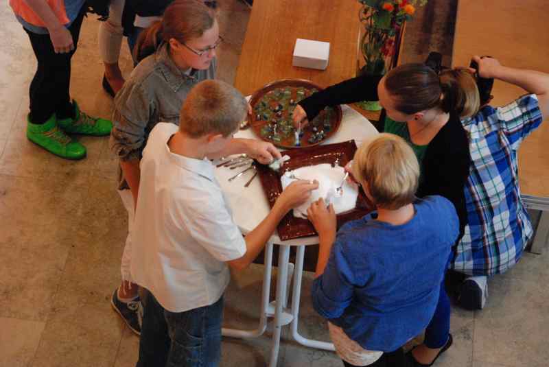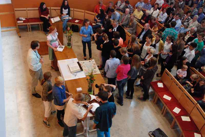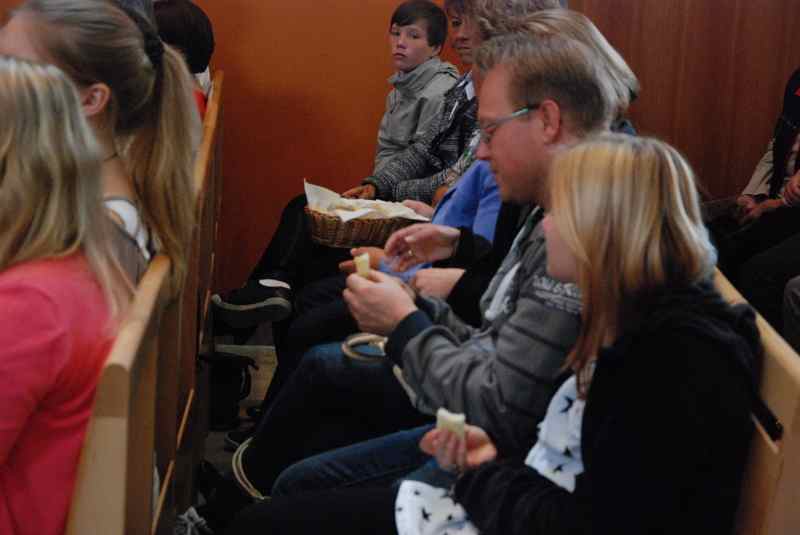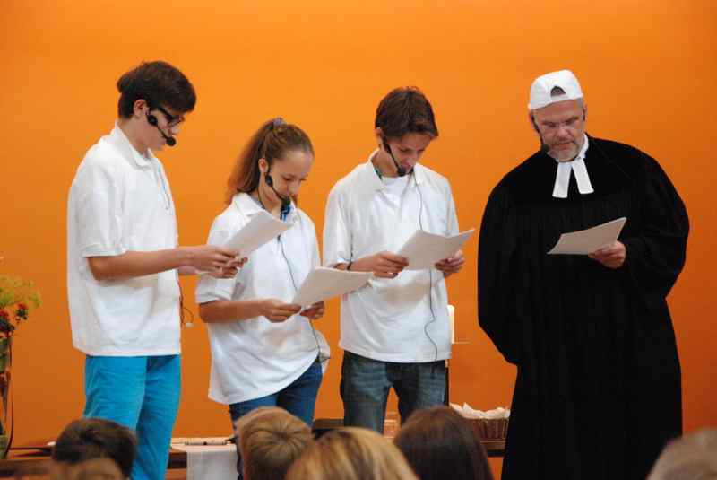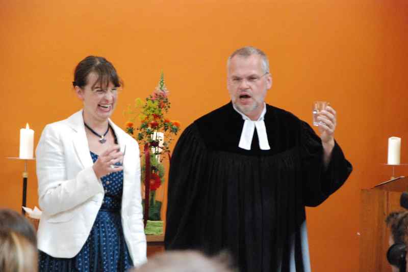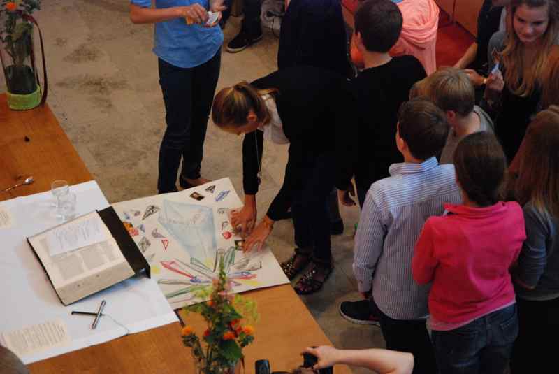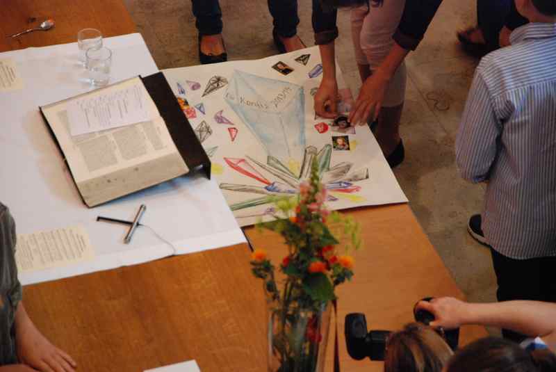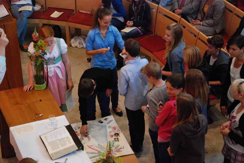 Im Mittelpunkt standen freilich die neuen Konfirmanden, die auf einem selbst gestalteten Bild durch Kristalle symbolisiert wurden. Nachdem sie in der voll besetzten Kirche wegweisende Worte von Pfarrer Baldeweg zum hören bekommen hatten, wurden ihnen und allen Gemeindemitgliedern Salzstreuer überreicht. Diese sollen daran erinnern, das rechte Maß im Leben zu finden und es nicht zu "versalzen".