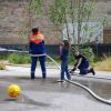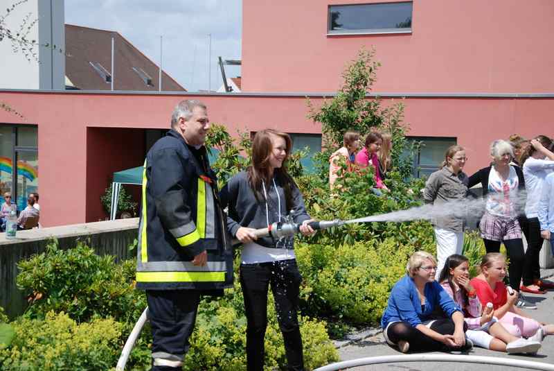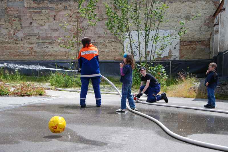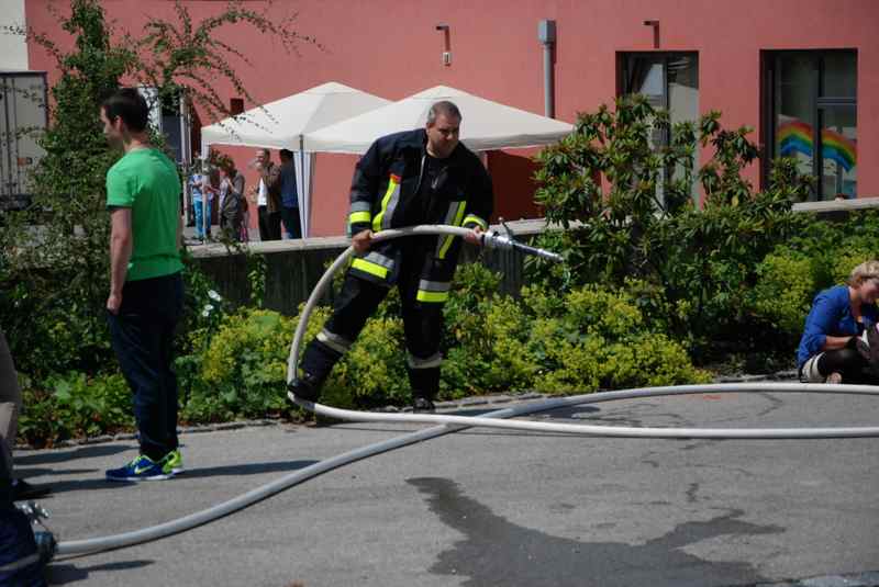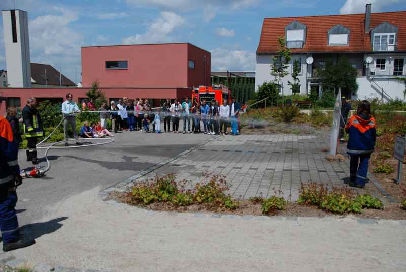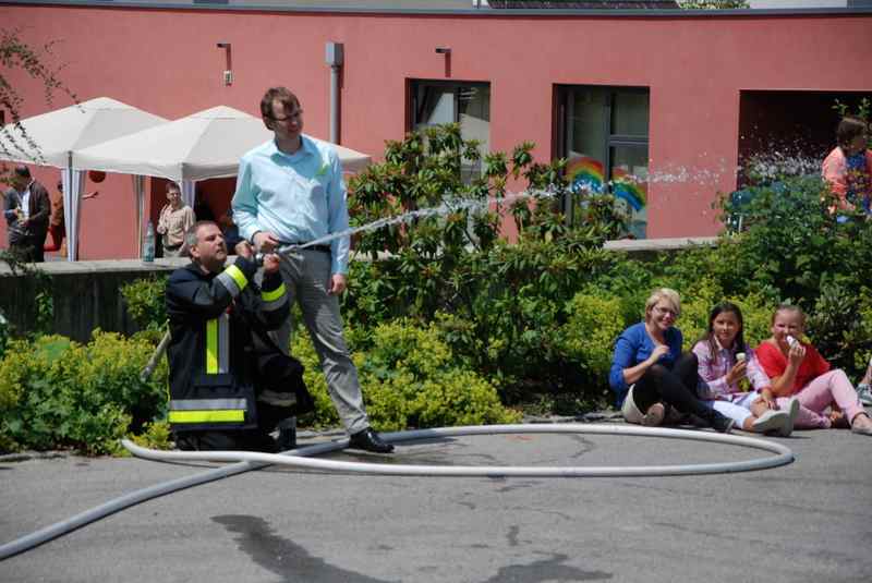 Zm Glück nur ein Spiel: Auf dem Gemeindefest der evangelischen Kirchengemeinde war die Freiwillige Feuerwehr angerückt - eine besondere Attraktion für die Kinder, die das Löschen ausprobieren wollten. Der Förderverein hatte das Zusammentreffen organisiert: Es gab Fleisch vom Grill, Salate, Kuchen und Eiskaffee. Für eine gute Atmosphäre sorgte auch die Livemusik vom Alam-Pause-Quartett.