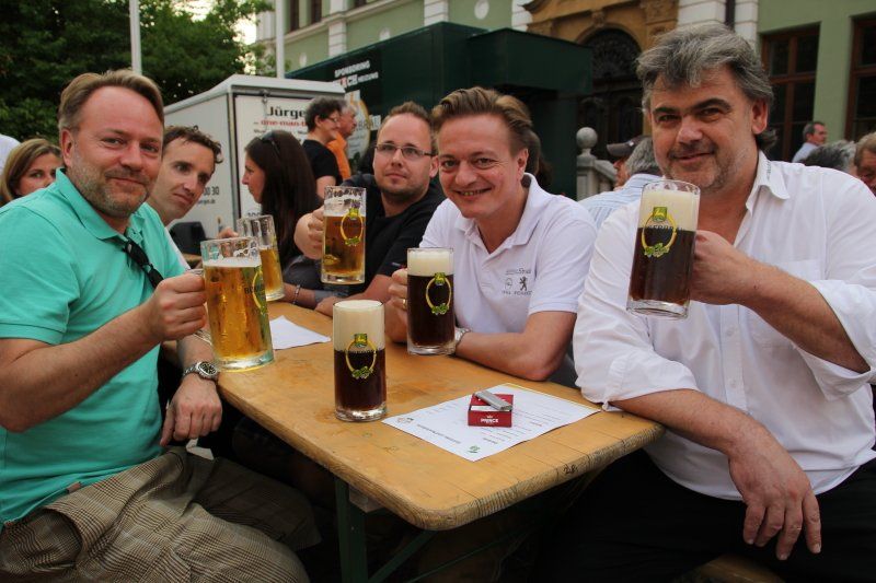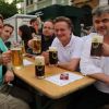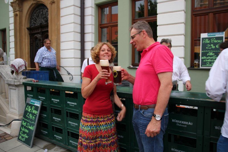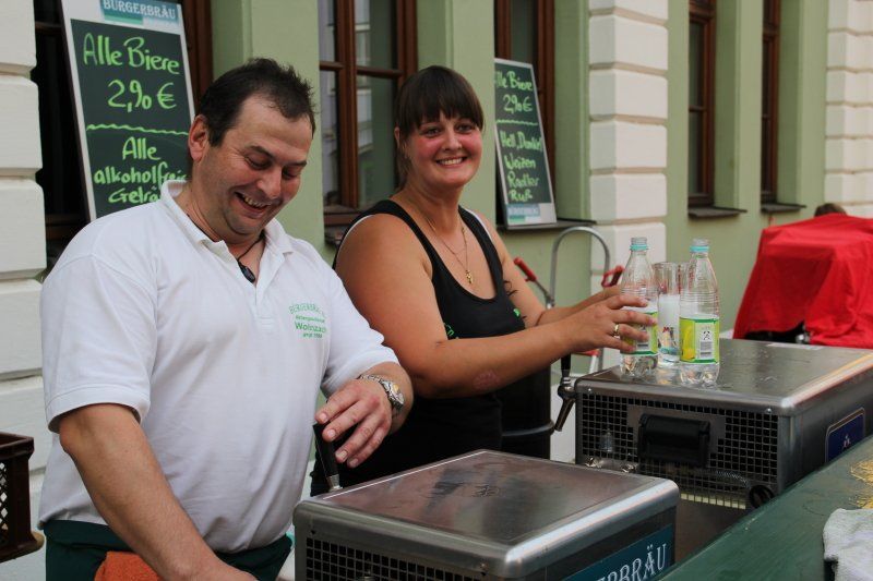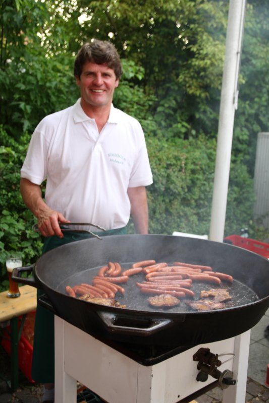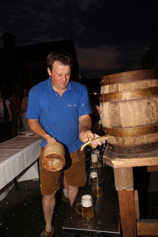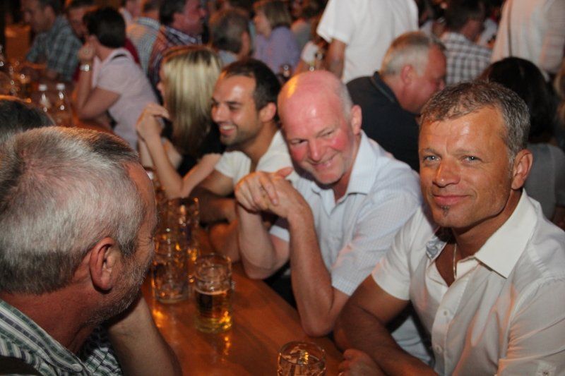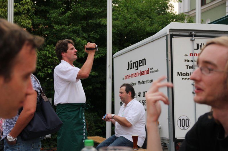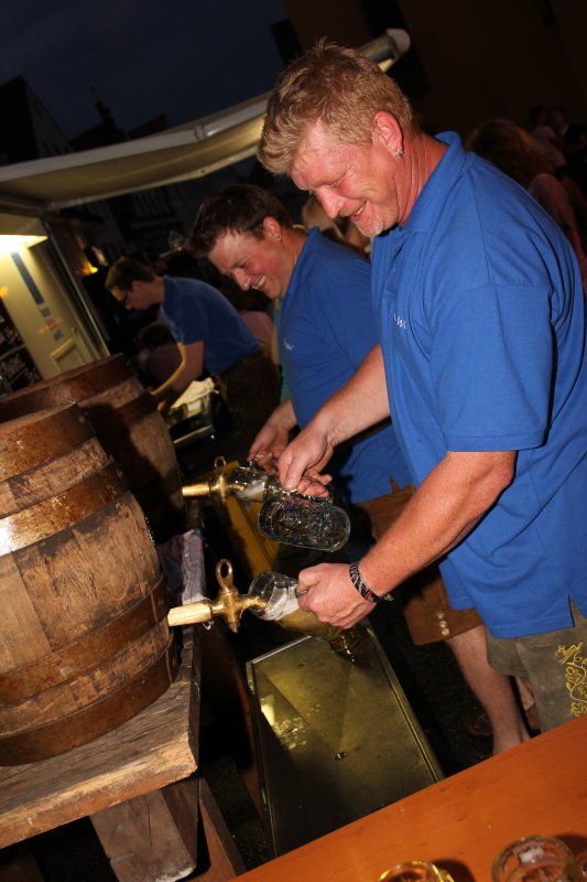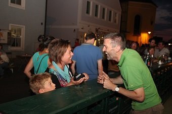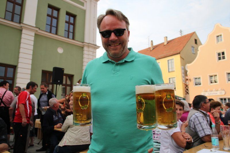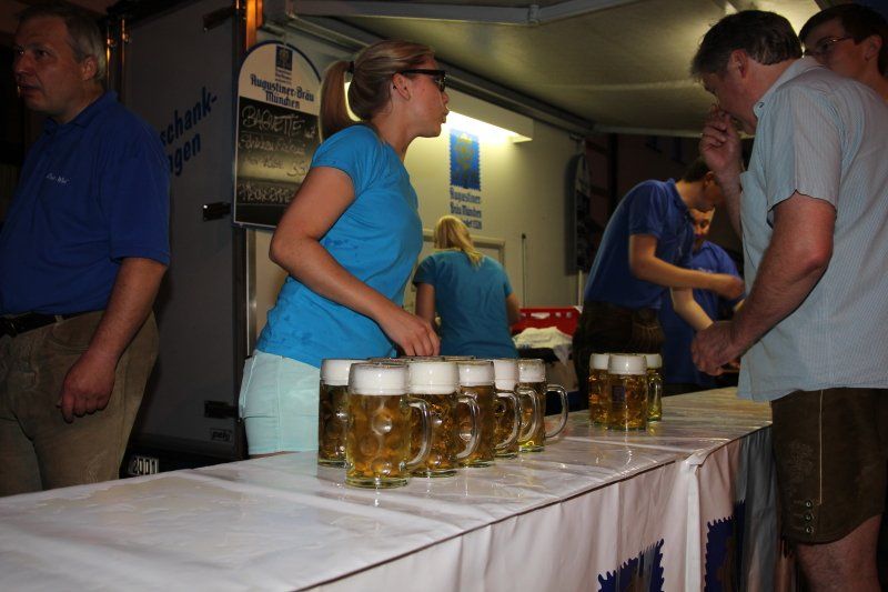 Schon früh – Pfarrer Braun hatte seine Predigt noch nicht beendet und die Musiker waren gerade noch mit den letzten Vorbereitungen beschäftigt – herrschte im Zentrum reges Treiben. Während viele Kids immer noch nicht genug hatten und Runde um Runde auf dem Rücken eines Stieres zubrachten, genossen viele im Schatten des Rathauses erst einmal ein kühles Bier. Ob nun ein Augustiner, Gutmann oder Bürgerbräu besser ist, darüber lässt sich an dieser Stelle nicht streiten. Eins steht aber zweifelsohne fest, auch bei Speis und Trank hatten die zahlreichen Gäste am Ende die Qual der Wahl, denn kein Wolnzacher Wirt ließ es sich nehmen, bei diesem Fest dabei zu sein. Und so breitete sich ein herrlicher Grillgeruch entlang der Preysingstraße aus.