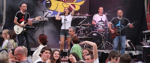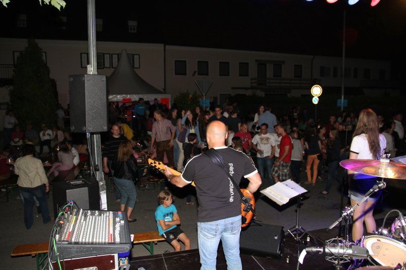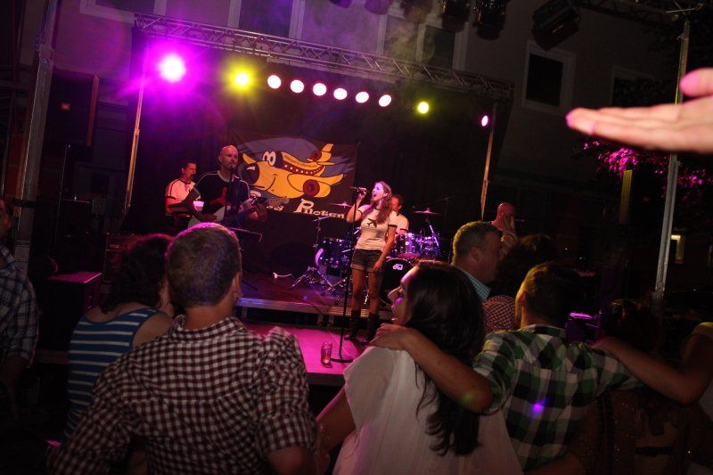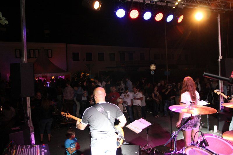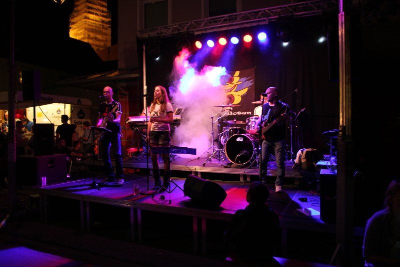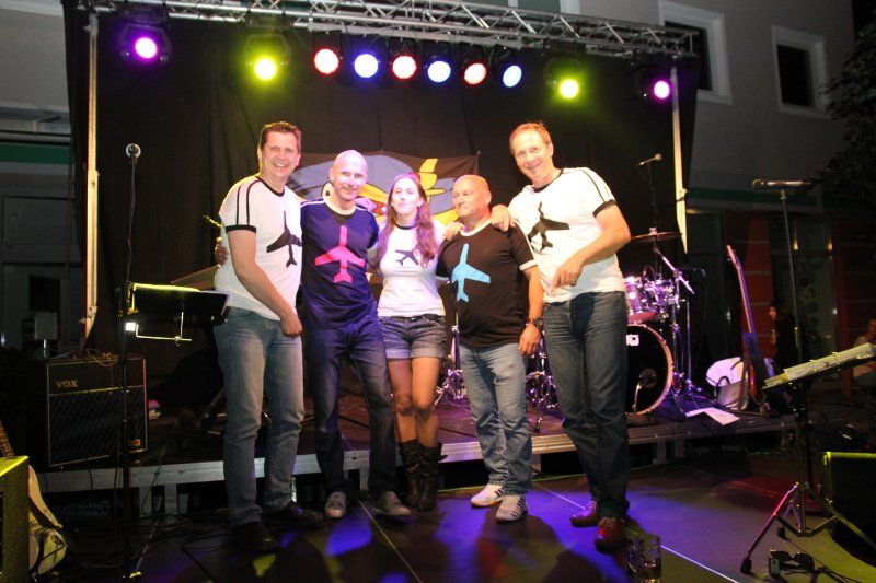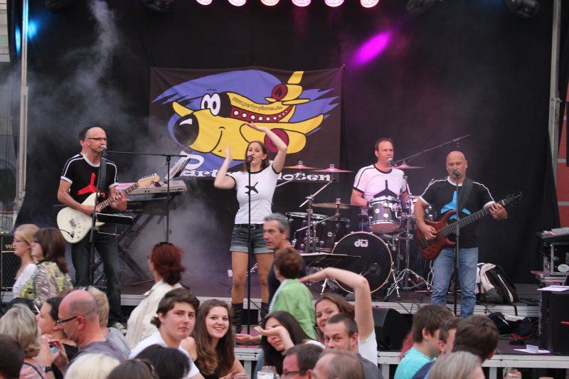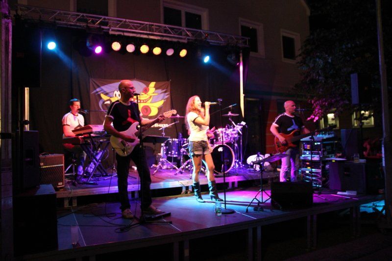 Und während viele unter blauem Himmel die Köstlichkeiten der Wolnzacher Wirte genossen, sorgten sechs verschiedene Bands mit ganz unterschiedlicher Musik für die nötige Stimmung. In diesem Jahr zum erstem Mal mit dabei: die Party Piloten. Pünktlich um 8.00 Uhr setzte ihre Maschine – von den heimischen Fans schon sehnlichst erwartet - in der Schloßstraße zur Landung an. Mit im Gepäck natürlich wieder jede Menge Hits und Gassenhauer. Während nun also Flugkapitän Rudi den Takt vorgab, Kurt mit den Fingern über die Tasten seines Keyboards huschte, Xari seinen Bass zum Klingen brachte, Stefan lässig in die Saiten griff und Eva einen Hit nach dem anderen anstimmte, tanzten die Wolnzacher ausgelassen vor der Bühne.