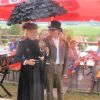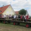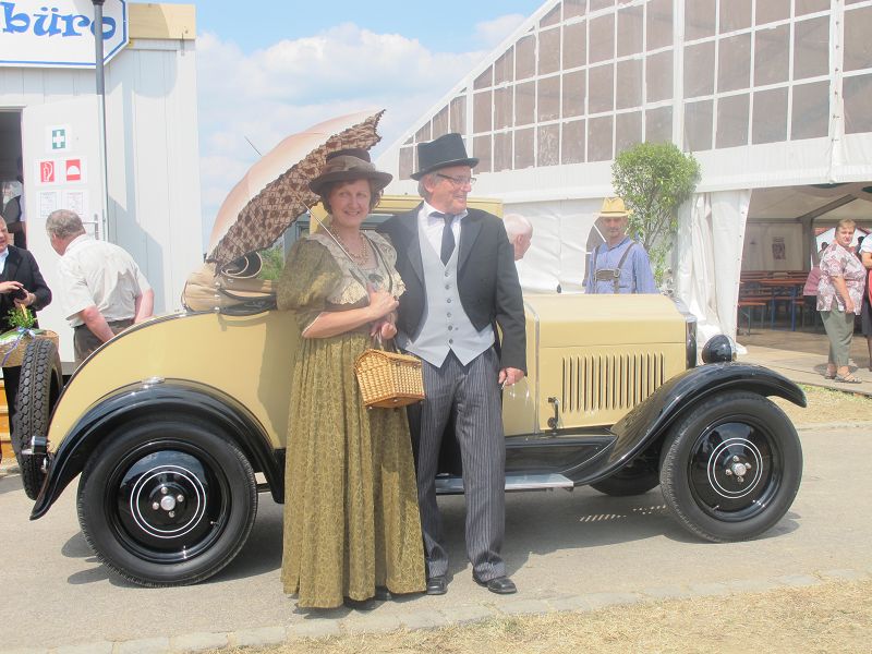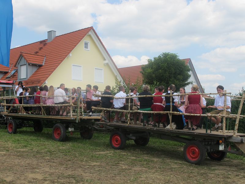 Standesgemäß wurde in einem uralten Opel vorgefahren, nur die Burschen und Mädel kamen auf Anhängern, die von einem Traktor gezogen wurden.