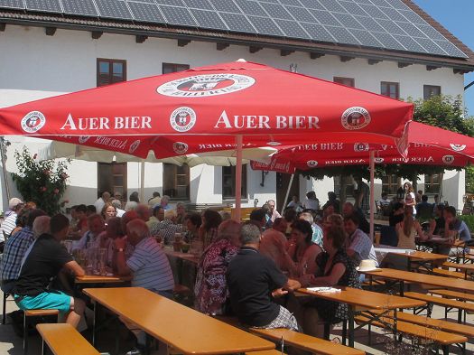 Im Innenhof des Gasthofes wurde gegrillt, ein reichhaltiges Salatbuffet war angerichtet, und die Genossenschaftsmitglieder genossen auf der Terrasse bei schönstem Sommerwetter ihre Feier, die nächstes Jahr dann wieder in Hausmehring stattfindet.