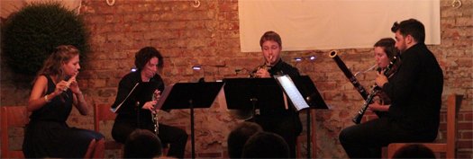 Die schon so oft zitierte traumhafte Atmosphäre des Prielhof-Gewölbes, das außerdem noch die sommerliche Hitze absorbierte, dazu ein virtuoses Bläserquintett mit einem abwechslungsreichen Programm - die Gäste der nunmehr 5. Veranstaltung der diesjährigen Sommerkonzertreihe kamen wieder einmal voll auf ihre Kosten.