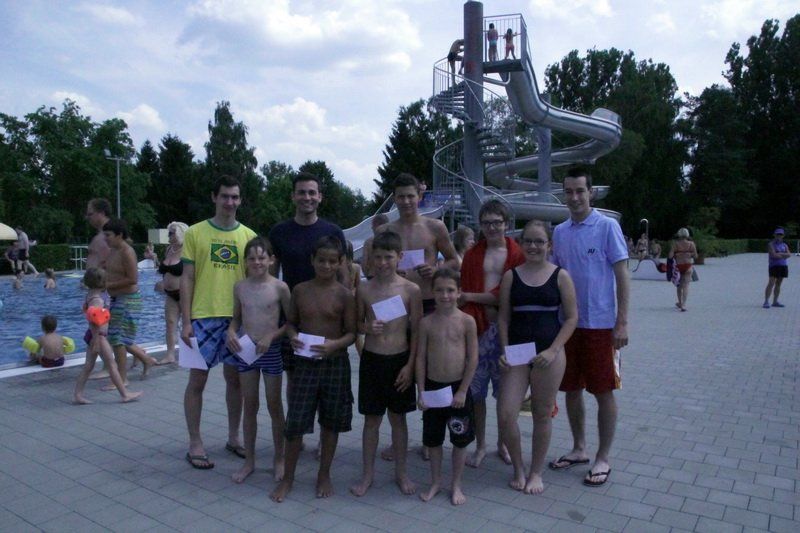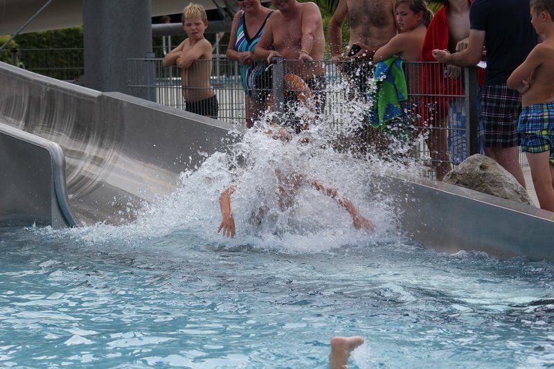 53 Kids gingen in diesem Jahr an den Start und wollten natürlich wissen, wer am schnellsten die Wasserrutsche hinuntergleiten kann. Einen Tipp gab‘s für alle mit auf den Weg. Füße über Kreuz und nur auf den Fersen und Schulterblättern nach unter gleiten. Mit 13,21 Sekunden löste Julian Catlik die Aufgabe nahezu perfekt und in seiner Altersklasse (10-14 Jahre) damit den ersten Platz. Platz zwei und drei gingen an Pascal Hermann (13,29 sek.) und Daniela Popp (13,40 sek.).