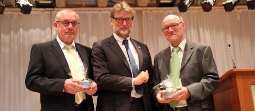 Landrat Martin Wolf (mitte) verabschiedete Schulleiter Erich Schlotter und Studiendirektor Roland Patzak in den Ruhestand.