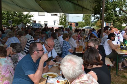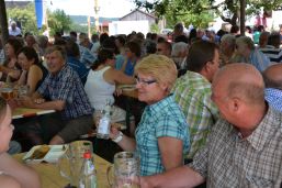 Mit dem Aufbau des Zeltes , der Bierbänke, der Hüpfburg und Essensausgabe waren die Böllerschützen Tage vorher in der Hitze schon genügend beschäftigt, so dass sie sich das Bier am Sonntag bei ihrem Gartenfest redlich verdient hatten. Und nicht nur die Burgstaller waren gekommen, auch Nachbarn und Freunde aus Wolnzach, Rohrbach, Königsfeld waren anwesend – das war unschwer an den vielen am Straßenrand geparkten PKW zu erkennen, während die Burgstaller natürlich zu Fuß oder per Radl ankamen. Über die Resonanz konnte Böllerschützen-Vorstand Johann Hilgert rundum zufrieden sein. Schließlich ist dieses Gartenfest schon gute 40 Jahre alt, wenn auch nicht von Beginn an von den Böllerschützen veranstaltet, sondern vom Dorfwirt.