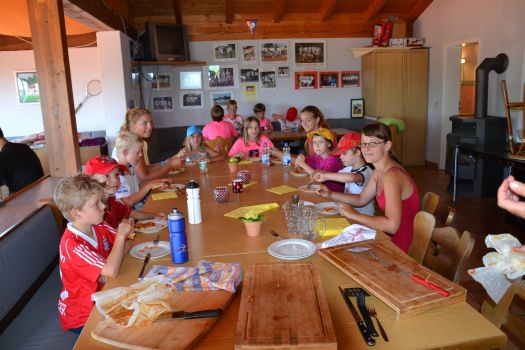 Verpflegt werden sie von Anke Warnecke, die natürlich die Lieblingsspeisen der Kleinen zubereitet, wie zum Beispiel am Montag ein großes Blech Pizza, und wie von einem kleinen Küchenexperten zu vernehmen war, gibt es an einem der nächsten Tage selbstgemachte Burger. Und vielleicht schon morgen bekommt jeder sein eigenes Tennis-Camp-Shirt mit dem Aufdruck „Tenniscamp 2013“, teilweise gesponsert von Sport Bauer Pfaffenhofen.