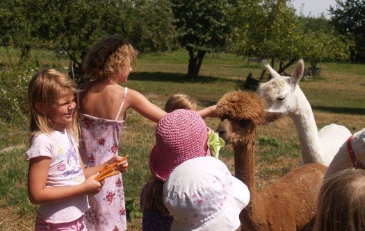 Spiel, Spaß und Spannung mit Hasen, Ziegen und Alpakas versprach heute ein Besuch im Bauernhofcafe Dobl in Reichertshausen. Zuallererst war einmal war das Kennenlernen zwischen den Kids und den Alpakas angesagt. Mit kleinen Karottenstückchen durften die Kinder die Tiere füttern und ihr Zutrauen gewinnen.