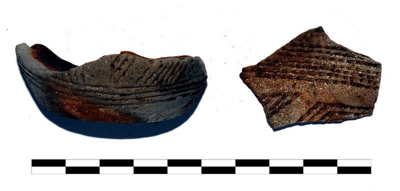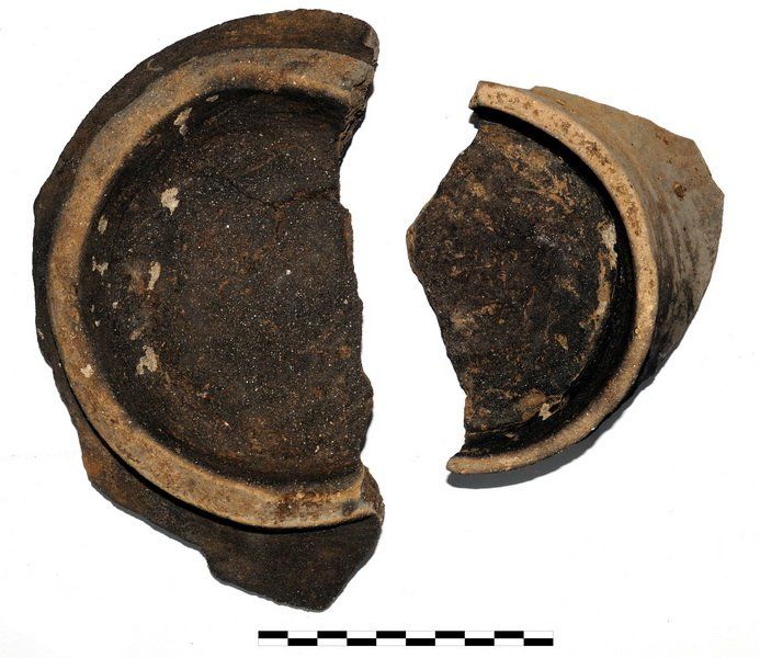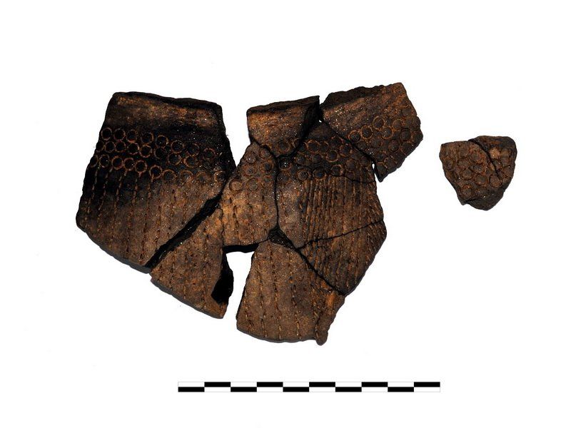 Insgesamt wurden auf der gesamten Grabungsfläche 36 Funde dokumentiert. Dabei handelt es sich zumeist um Pfosten-, Vorrats-, Siedlungs- oder Schlitzgruben. Neben diesen wurden aber auch ein kleiner Graben sowie zwei Feuerstellen gefunden. Die darin enthaltenen Scherben lassen sich eindeutig der Münchshöfner Kultur zuordnen. „Wir haben außerordentlich schöne Stücke gefunden“, so die Grabungsleiterin Rebecca Münds. Dazu zählt nicht nur die mit einer selten Verzierung ausgestatteten Fußschale, sondern auch die zylindrische Schöpfkelle mit einem organischen Griff.