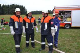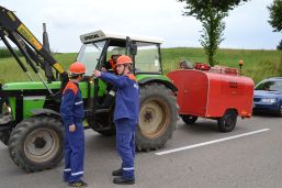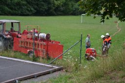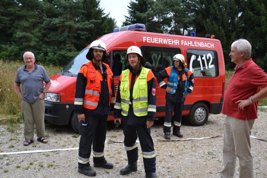 Bürgermeister Dieter Huber, sein Stellvertreter Peter Otto und Gemeinderäte von SPD und CSU waren anwesend und beobachteten „ihre“ Feuerwehrleute bei der Arbeit. Für Bürgermeister Huber sind die altertümlich wirkenden Pumpwagen der Ortsteilfeuerwehren kein Problem, denn auch sie können sinnvoll eingesetzt werden, und bei einem echten Großbrand kämen ja auch noch Wehren aus anderen Orten dazu. Den zuschauenden Kindern und Erwachsenen bot sich ein interessantes Schauspiel, was sie so auch nicht alle Tage zu sehen bekommen. Und vielleicht hilft diese Übung ja auch, den einen oder anderen Jugendlichen für die Feuerwehr zu begeistern. Zum Schluss gingen die Wehrführer noch einmal den Ablauf durch und besprachen einige Punkte in der Manöverkritik. Aber zufrieden waren sie alle, so dass sie danach im Feuerwehrhaus erst einmal selber ihren Durst löschen und eine Brotzeit einnehmen konnten.