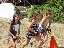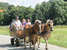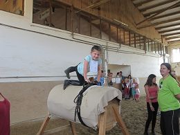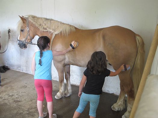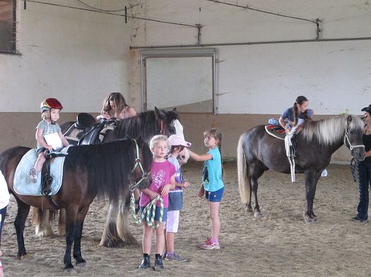 Dazu gehörten: erste Putzversuche an geduldigen Haflingern, Ponyreiten in der Halle, Kutschfahrt mit 2 Haflingern, Voltigierversuche auf einem hölzernen Pferd, Schmiedehammern mit Nägeln auf einem Holzstock und zuletzt ein Steckenpferdrennen über einen Springparcour am Reitplatz.