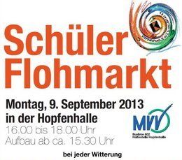 Es wird keine Standgebühr erhoben, eine Anmeldung ist nicht notwendig, es können Schüler aus der gesamten Region teilnehmen. Der Verkauf erfolgt auf eigenen mitgebrachten Tischen oder Decken, diese werden vom Veranstalter nicht gestellt. Verkauft werden Spielsachen, Bücher, Kinderräder, Roller, Ski, Puppen, Inlineskates, Kassetten, DVD´s, CD-ROM´s, Game-Boy, Rollschuhe, Kinderschuhe, Kinder- und Babybekleidung und vieles mehr. Kaffee und Kuchen wird angeboten. Getränke gibt es für die Kinder zum Selbstkostenpreis. Die Anreise zum Schüler-Flohmarkt ist auch mit dem MVV-Linienbus 602, Haltestelle Hopfenhalle, möglich.