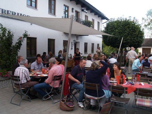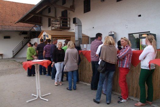 Schon zu Beginn um 19.00 Uhr herrschte reger Betrieb im Innenhof des Gasthofes der Familie Selmayer in Airischwand. Die Feuerschale war mit Brennholz gefüllt und viele der Tische waren bereits besetzt oder reserviert. Am Pizzastand bildete sich eine lange Schlange und der Schoppen Wein war auch schon bestellt. Im Saal des Gasthofes war vor der Theke ein Buffet mit italienischen Köstlichkeiten vom „Trentiner Vorspeisenteller“ bis „Tagliatelli mit Pfifferlingrahmsoße“ aufgebaut. Die auserwählten Weine stammten vom Weingut „le Fontanelle“ bei Cologna die Tenno. Das Wetter hielt bestens und für die musikalische Unterhaltung sorgte die Band „Lifetime“. Die besten Voraussetzungen für einen tollen Abend.