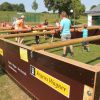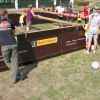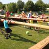 Um 10:00 Uhr begann die Turniereinschreibung. Jeweils ein Erwachsener und ein Kind wurden zu einem Team zusammengefasst, 3 Teams im Turnierverlauf jeweils zu einer Mannschaft zusammengelost. So spielte fast jeder mal mit, aber auch gegen jeden. Beabsichtigter Nebeneffekt: auch die Erwachsenenen lernen sich untereinander kennen und wissen nach diesem Tag, welches Kind zu welchen Eltern gehört.