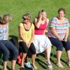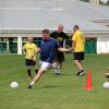Spaß hatten dabei alle. Die Kids kämpften den Erwachsenen ein ums andere Mal den Ball ab. Tore durften gemäß der Regeln sowieso nur die Kleinen schießen, so dass die Großen gezwungen waren, taktisch zu spielen. Konditionell waren die Kinder und Jugendlichen, die mitten aus der Campwoche kommen, den meisten Eltern ohnehin überlegen. Den Älteren stand der Schweiß nach den Spielen auf der Stirn, die Jüngeren schnappten sich sofort einen Ball und weiter ging's.