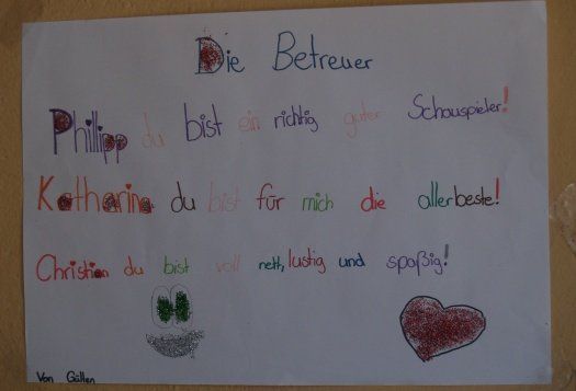 Mit einem abwechslungsreichen Programm haben die drei Betreuer Katharina, Phillip und Christian die Kinder jeden Nachmittag beschäftigt. Zum Abschluss gab es wieder die allseits beliebte Olympiade, bei der sich die Betreuer unterschiedliche „Olympische Spielarten“ einfallen ließen. Am Ende gab es dann natürlich eine „Olympische Urkunde“ für die Kinder, damit sie auch noch eine schöne Erinnerung an diese tollen Feriennachmittage mit nach Hause nehmen konnten. Dass sich alle sehr gut verstanden haben, kann man auch an den selbst entworfenen Bildern sehen, die die Kinder gemalt haben.