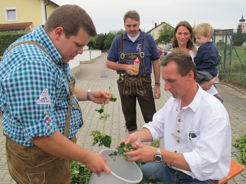 Auch das Hopfazupfa-Wettzupfn war ein Renner, was vor allem vielen Männern gefiel. Gleichermaßen große Beteiligung bei Weiblein und Männlein fanden das leckere Essen und das kühle Bier.