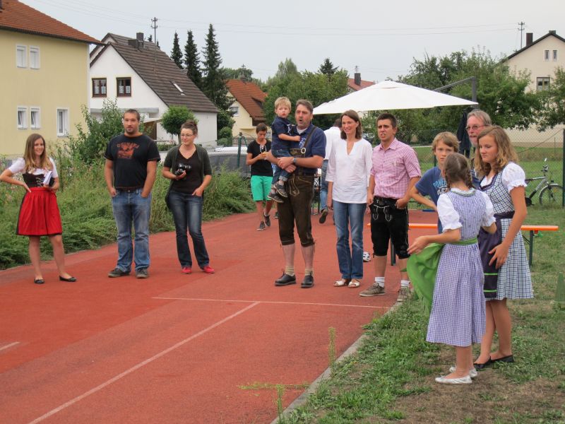 Viel Spaß hatten die Festbesucher mit den lustigen Spielen. Beim Fasslrollen wurden die mutigen Teilnehmerinnen kräftig von den Zuschauern angefeuert, was diese jedoch eher nervöser als schneller machte.