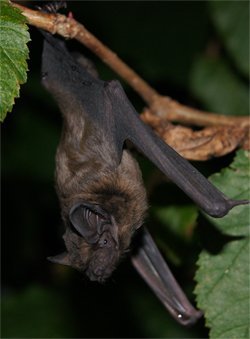 Und es wurde niemand enttäuscht. In einem anschaulichen Biologieunterricht erzählte Rachl viele selbst erlebte Geschichten rund um die Fledermäuse. Darüber erfuhren die Teilnehmer sehr plastisch sowohl etwas über die heimischen Arten wie Mausohren, Hufeisennasen, Wasserfledermäuse oder Abendsegler (Foto links: Martina Widuch), ihre Lebensweisen, biologische Einordnung sowie Fortpflanzung und Kinderstuben.