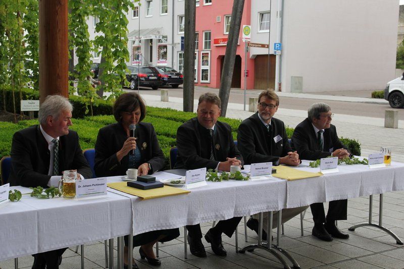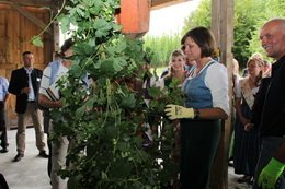 Zunächst stand dabei eine Pressekonferenz auf dem Programm, bei der neben den aktuellen Zahlen zur Hopfenernte und -marktlage auch der Dank an Ilse Aigner und ihr Engagement für die besondere Kulturpflanze nicht zu kurz kam. „Frau Aigner hat bewiesen, dass sie ein Herz für den Hopfen hat. Denn wer das Räderwerk in Brüssel ein bisschen kennt, der kann erahnen, wie viel Mühe sie der Einsatz für unsere Produkte gekostet hat“, so Dr. Johann Pichlmaier, Präsident des Hopfenpflanzerverbandes, der sich insbesondere auch bei Albert Deß und Britta Reimers vom Europäischen Parlament sowie bei Staatsminister Helmut Brunner für die Ergebnisse der Verhandlungen zur GAP in Brüssel bedankte.