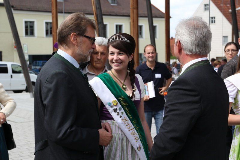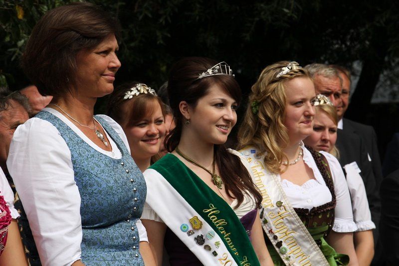 „Dies ist ein stolzer Tag für Wolnzach und den Hopfen, der zeigt, dass die Zusammenarbeit zum Wohle der Kulturpflanze ‚Hopfen‘ funktioniert“, begrüßte Bürgermeister Jens Machold die zahlreich erschienenen Gäste, unter ihnen auch Bundesministerin Ilse Aigner sowie Staatsminister Helmut Brunner. Entsprechend des hohen Besuches in der Hopfenmetropole fiel die Hopfenrundfahrt dieses Jahr – ganz im Gegensatz zur Ernte – im Hinblick auf die Zahl der anwesenden Gästen und Medien deutlich umfangreicher aus. Zahlreiche Vertreter aus Politik und Hopfenwirtschaft trafen so gestern zu Ehren des grünen Goldes zusammen – begleitet übrigens vom gewohnt gnädigen Wolnzacher Wettergott.