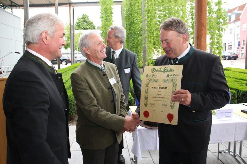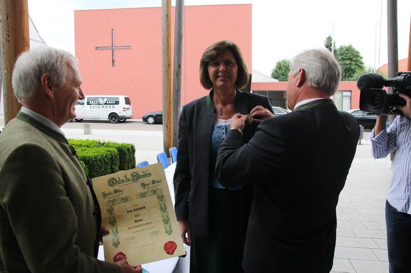 So bleibt beispielsweise die Förderung der Erzeugergemeinschaften erhalten, die Hopfenzertifizierung unverändert und auch die Mindesqualitätskriterien bei der Hopfeneinfuhr müssen weiter eingehalten werden. „Aus Sicht des Hopfens können wir mit den Ergebnissen sehr zufrieden sein“, versicherte Dr. Johann Pichlmaier. „Die Unterstützung für den Hopfen ist sehr wichtig, denn es gibt sonst keine Landwirtschaftsart, die so sehr mit Bayern verwurzelt ist. Wir sind sozusagen das Weltland des Hopfens und das sollen wir auch in Zukunft bleiben“, hielt zudem Bundesministerin Ilse Aigner fest, die im Anschluss für ihren politischen Einsatz zugunsten der Kulturpflanze mit dem Hopfenorden des Internationalen Hopfenbaubüros ausgezeichnet wurde.