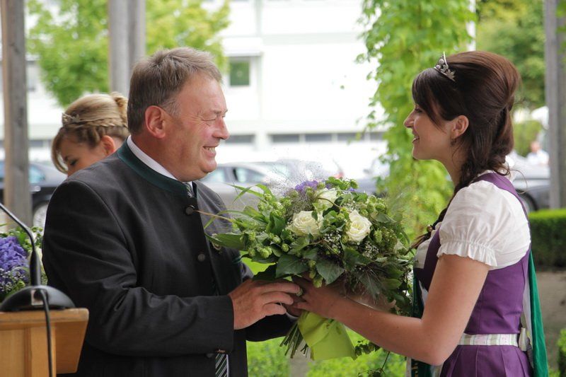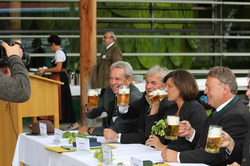 Auch Staatsminister Helmut Brunner konnte nur hinzufügen, dass es ohne Hopfen kein Bier und ohne Bier kein Bayern gäbe. Doch trotz der schlechten Ernteaussichten konnte er die anwesenden Gäste beruhigen: „Zwar haben wir dieses Jahr geringere Erträge, aber dennoch wird kein Volksfest gefährdet sein.“ So konnte sich die erleichterte Menge schließlich auf zu den Bussen machen. Ein erster Halt war im Hopfenforschungszentrum Hüll geplant.