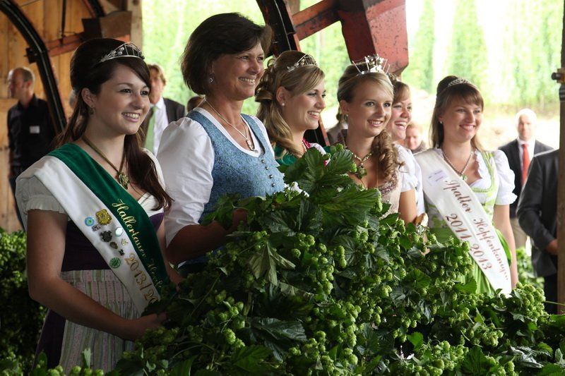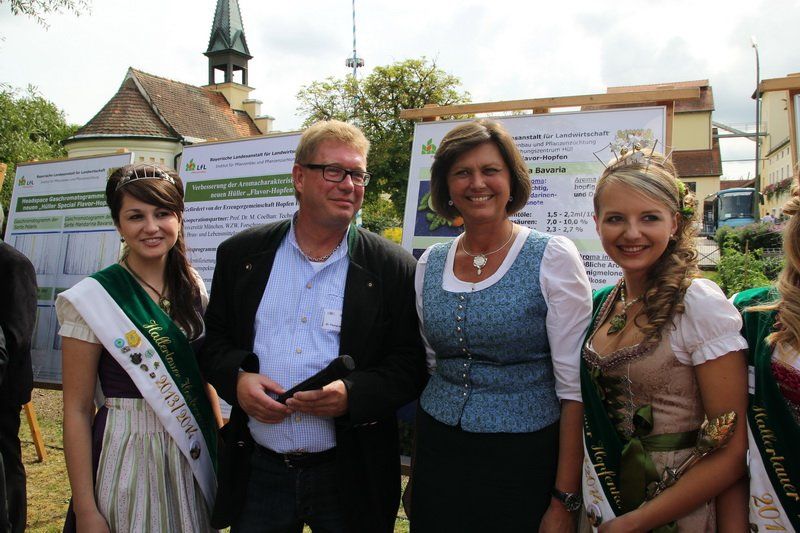 460.000 Ztr. auf einer Gesamtanbaufläche von 14.086 ha in der Hallertau – das war die geschätzte Zahl für die Hopfenernte, die im Rahmen der Hopfenrundfahrt am gestrigen Montag der Bundesministerin für Ernährung, Landwirtschaft und Verbraucherschutz, Ilse Aigner, sowie dem Bayerischen Staatsminister für Ernährung, Landwirtschaft und Forsten, Helmut Brunner, vorgestellt wurde. Damit fällt die Ernte aufgrund der diesjährig ungünstigen Wetterverhältnisse um rund 23 Prozent niedriger aus, als es noch 2012 der Fall war. Doch auch ein positiver Aspekt konnte der Witterung 2013 abgewonnen werden, denn diese ließ den Pflanzenschutz besonders gering ausfallen.