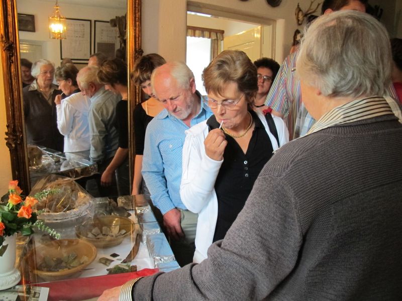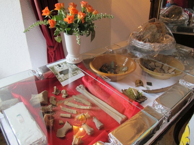 Frau Maderholz, Tochter der Schlossherrin hatte sich dafür etwas ganz Besonderes ausgedacht. Sie stellte die tierischen Knochenfunde vor, die bei Umbauarbeiten 1958 in einer Wand im Nebenzimmer gefunden wurden.