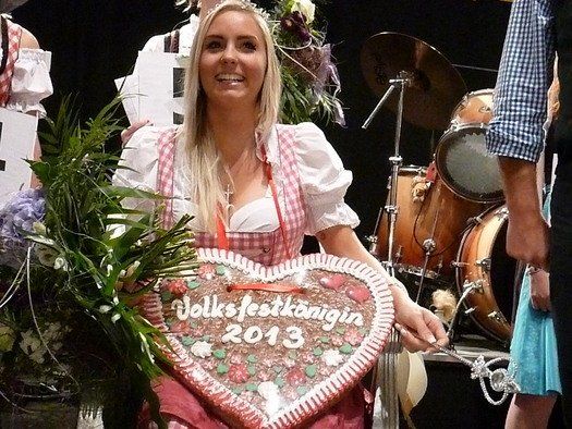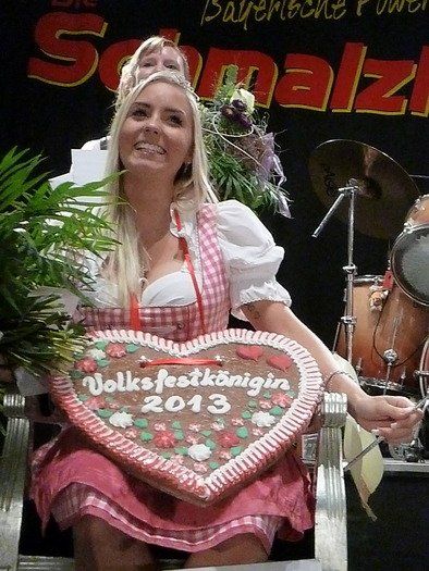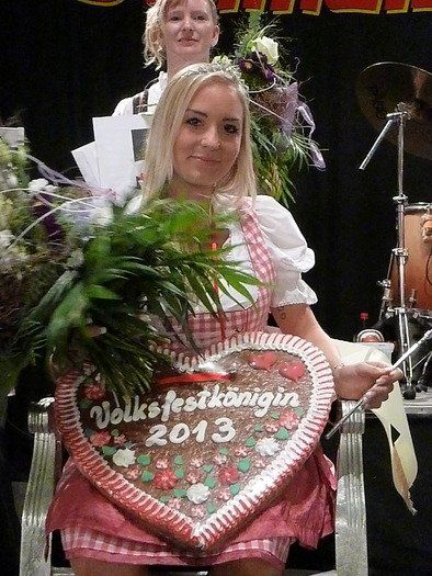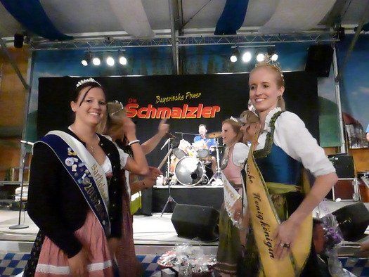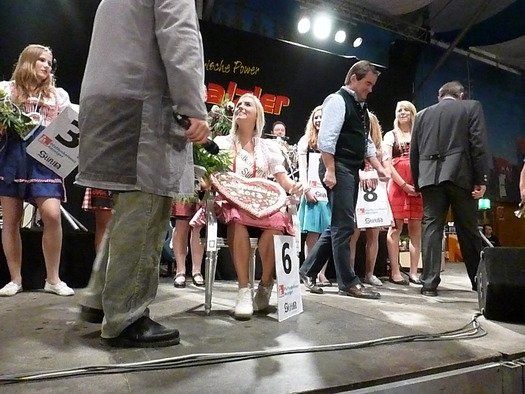 Die 20-jährige aus Waidhofen, sie arbeitet im elterlichen Betrieb im Büro, setzte sich mit großem Vorsprung gegen 8 Mitbewerberinnen durch. Den Grund ihrer Kandidatur gab sie mit einem Bekenntnis zu „blond“ ab, das sich hervorragend in die Reihe der früheren Königinnen einfügen würde. Königinnen gab es übrigens zuhauf direkt vor der Bühne zu bewundern, die Mädels reisen praktisch als Hofstaat und Schiedsrichtertruppe von Volksfest zu Volksfest und machen den Kandidatinnen vorab entsprechenden Mut zur Wahl.