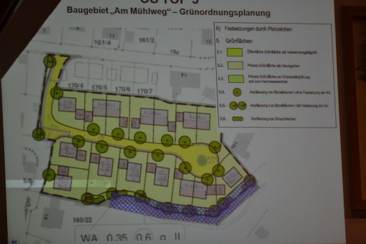 Im Gebiet Schelmengrund hatte ein Bauherr eine leichte Überschreitung der festgelegten Mauerhöhe durch eine Gabionenwand beantragt. Das war für die Versammlung kein weiteres Thema, da auch die Nachbarn zugestimmt hatten. Für den Bereich Mühlweg besteht der Bebauungsplan bereits, nun wurde über den Grünordnungsplan entschieden mit der Festlegung, dass auf Grundstücken ab 300 qm ein Baum zu pflanzen sei. Für die Gesamtfläche des Bebauungsplanes von 6.931 qm sind 2.500 qm Ausgleichsfläche erforderlich, so die Anmerkung von Bürgermeister Dieter Huber. Auch hier herrschte Einstimmigkeit. Das Umlegungsverfahren wird dem Vermessungsamt Pfaffenhofen übertragen.