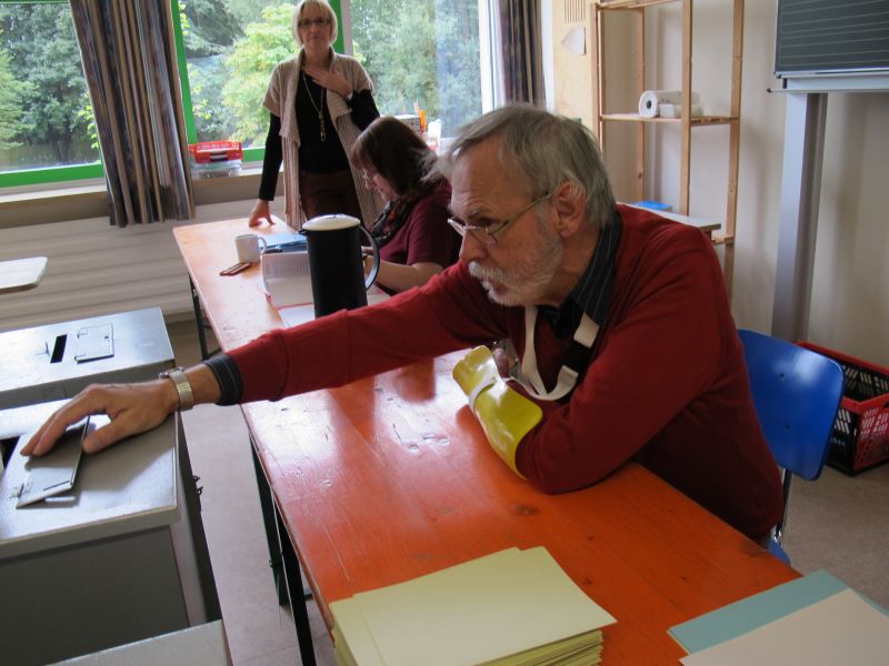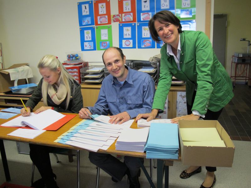 Die netten und sehr hilfsbereiten Wahlhelfer achteten darauf, dass keine Hektik aufkam und auch, dass alle Stimmzettel in den richtigen Wahlurnen landeten.