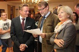 Am größten war die Freude über den Wahlausgang aber wohl sicher im konservativen Lager. So gratulierten Landrat Martin Wolf, Kreisvorsitzender Ludwig Wayand und Vorgängerin Erika Görlitz mit strahlenden Gesichtern Karl Straub, dem Sieger des Abends. „Die Erleichterung bei mir ist nun sehr groß. Der Wahlkampf war anstrengend, hat aber mit unserem Bomben-Team auch sehr viel Spaß gemacht“, freute sich Karl Straub über die Ergebnisse und konnte sich in Feier-Laune mit seinen Parteigenossen auf den Weg zur anschließenden CSU-Wahlparty machen. „Jetzt gibt’s erst noch ein, zwei Glässchen Sekt und ab morgen heißt’s dann an die Arbeit“, hielt der neue Landtagsabgeordnete abschließend fest und ließ keinen Zweifel daran, dass er mit viel Eifer und Freude sein Mandat ausfüllen wird.