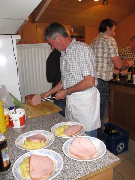 Nach dem offiziellen Teil wurde die Grundsteinlegung noch kräftig mit warmem Leberkäs und Kartoffelsalat gefeiert, denn die Steinbacher können nicht nur arbeiten, sondern auch feiern.