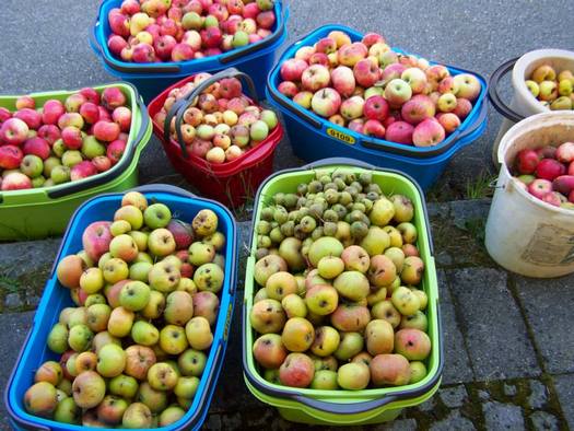 Obwohl das Obstjahr heuer witterungsbedingt allgemein eher mager ausfiel, wuchsen, bedingt durch den hohen alten Baumbestand, trotzdem wieder viele Äpfel, Birnen, Kirschen und Walnüsse im über 1.200 qm großen Garten. Zahlreiche Bürger und Bürgerinnen der Stadt nutzten die Einladung der Gestaltungsgemeinschaft zur kostenlosen Ernte. Eine Umfrage ergab, dass sie das Kernobst sowohl als Tafelspeise, zum Kompottmachen, Saftpressen, als auch zum Verfüttern verwenden. Nachdem über viele Jahre das meiste Obst ungeerntet vor sich hin verfaulte, ist es so durch das Prinzip der offenen Gartentür nach Absprache gelungen, dass das meiste Obst eine Verwertung findet.