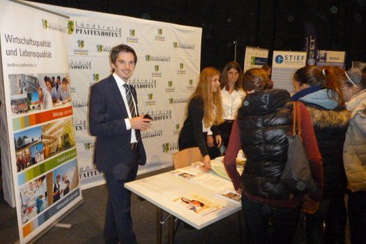 Der Wiedereinstieg in den Beruf, speziell für Frauen, hatte in dem breiten Angebot des Landkreises Pfaffenhofen ein extra dafür erarbeitetes Programm parat, das vielseitig angenommen wurde. Das Moser Agrar & Baufachzentrum stellte sich mit seinen drei großen Standorten Schweitenkirchen, Reichertshausen und Ingolstadt mit seiner 60-jährigen Geschichte und den dortigen Berufsmöglichkeiten vor. Die Kreishandwerkerschaft Ingolstadt-Pfaffenhofen war dank der guten Erfahrungen des letzten Jahres erneut vertreten und war vor allem bei den vielen Schulabgängern als Informationsquelle sehr beliebt. Auch das zweite Mal dabei war die Wotech GmbH aus Wolnzach die für ihre stark expandierenden Geschäftsbereiche immer Ingenieure und Software Entwickler sucht. Die EADS Deutschland GmbH Cassidian hatte mit ihrem großen Flugzeugmodell eines Euro Fighters und der entsprechenden Videoaufbereitung ihrer Produkte einen der großen Hingucker der Messe.