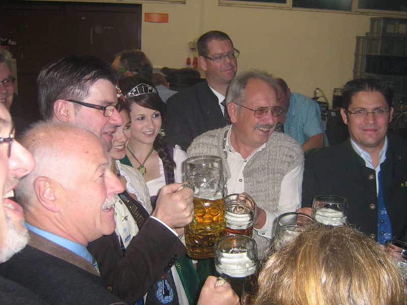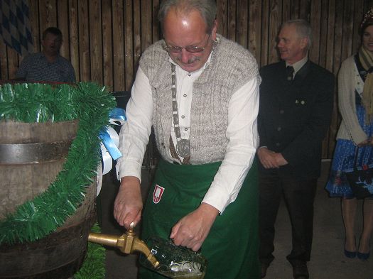 Im Festzelt angekommen, machte sich Bürgermeister Jakob Hartl sogleich ans Anzapfen. Nach 2 Schlägen war es dann so weit, er rief "o´zapft is" und schenkte auch gleich die ersten Maßen ein. Zusammen mit den Bürgermeistern der Nachbargemeinden, dem neu in den Bundestag gewählten Erich Irlsdorfer aus Freising und der Vizedirndlkönigin Maja Kelly aus Abensberg wurde angestossen. Es war der Abend der Betriebe und Vereine, die musikalische Umrahmung boten die Holledauer Musikanten unter Helmut Schranner.