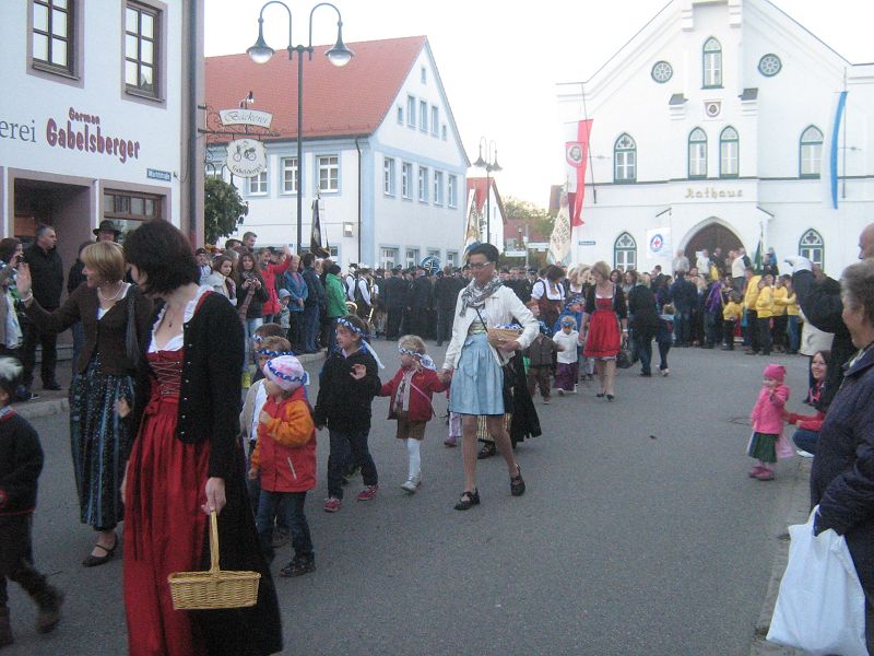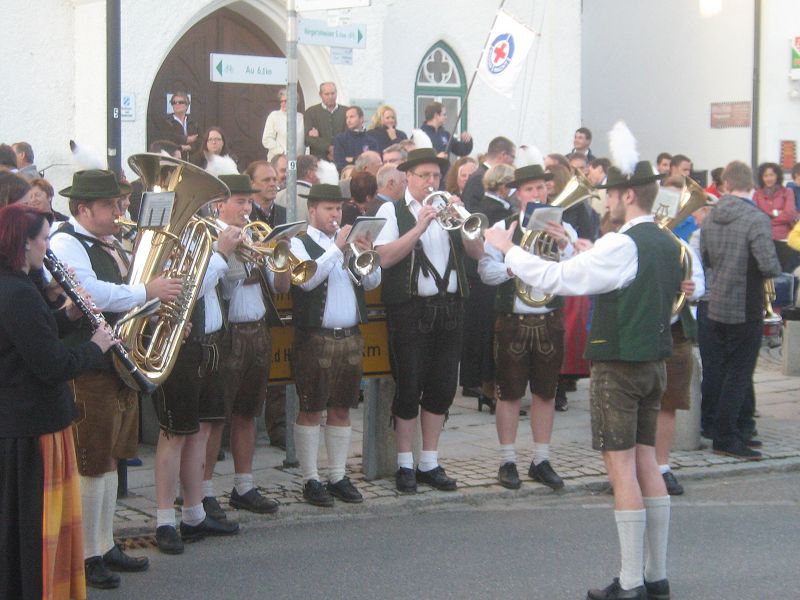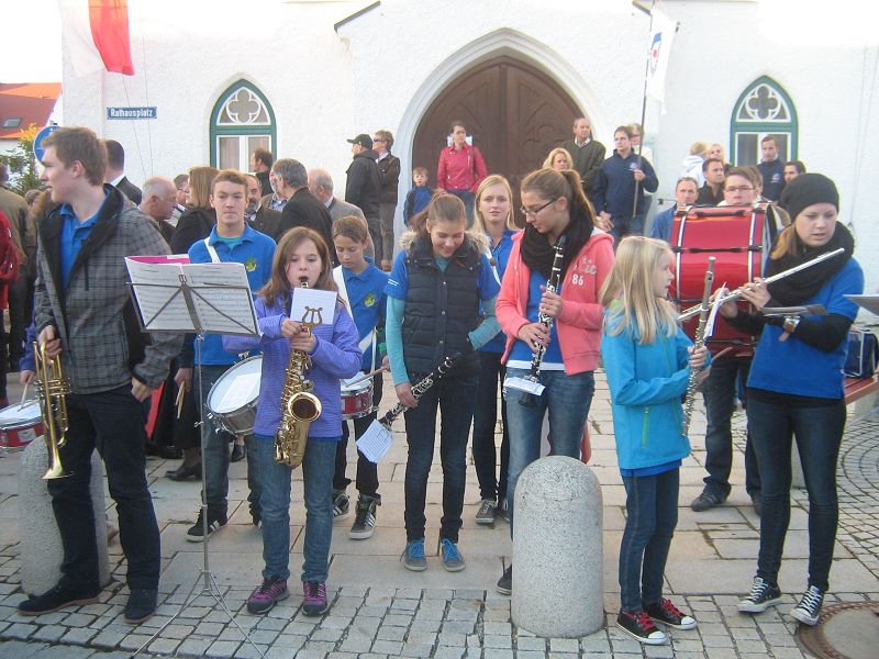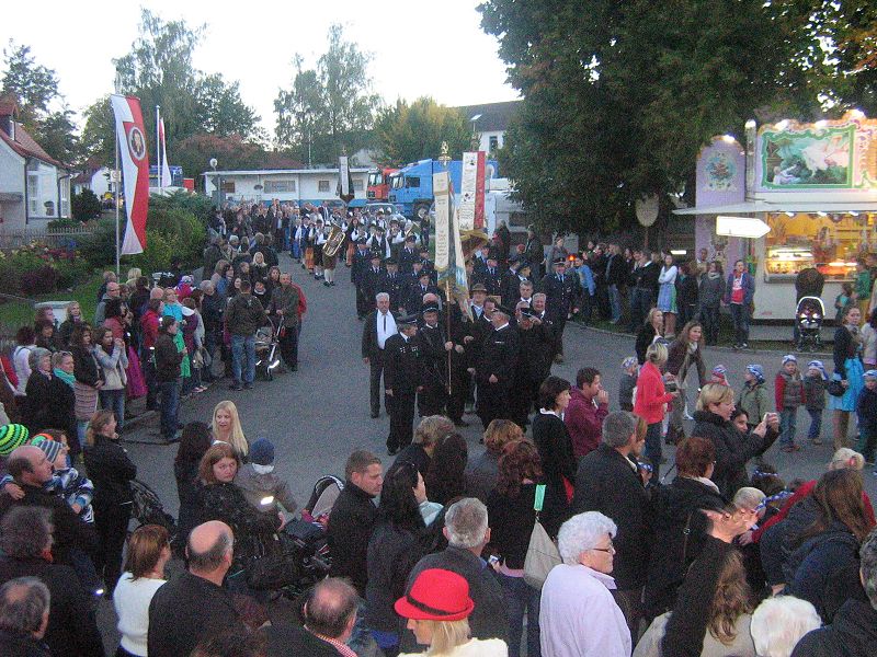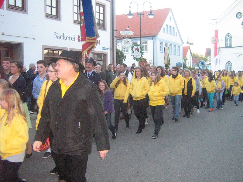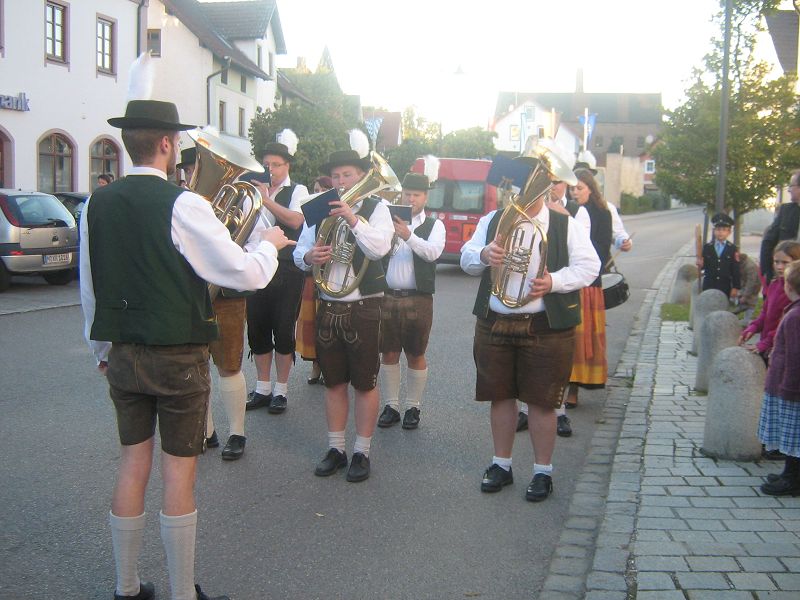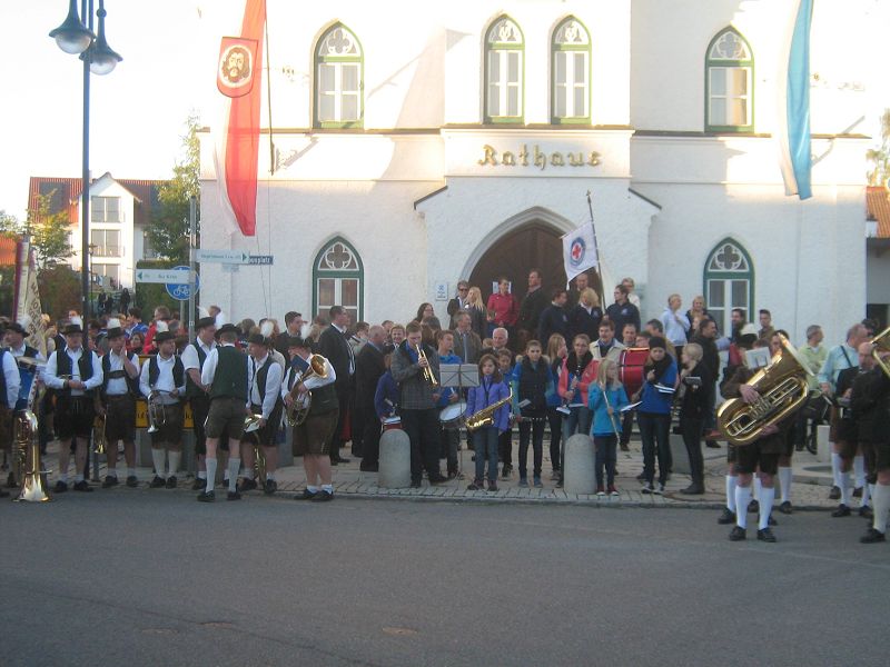 Abwechselnd spielten die 3 Musikgruppen bevor sich der Zug formierte und unter großer Anteilnahme der Bevölkerung Richtung Volksfestplatz marschierte.