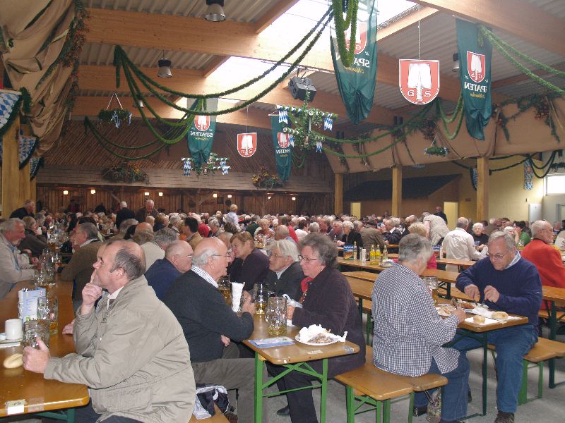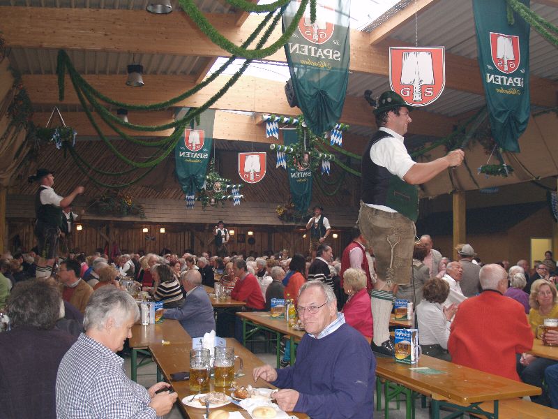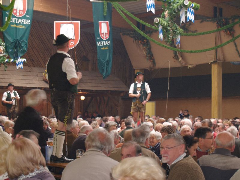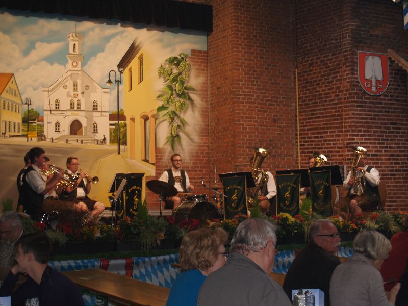 Wer hierfür keine Lust hatte, genoss den Aufenthalt in der schön dekorierten Hopfenhalle mit den Holledauer Hopfareissern und den Pfaffenhofener Goaßlschnoizern. Mit Volksfestspezialitäten von der Festküche Kellner und dem süffigen Festbier von der Spatenbrauerei konnten es sich die vielen Besucher gutgehen lassen. Auch Bürgermeister Jakob Hartl kümmerte sich bestens um die Gäste und wechselte an jedem Tisch ein paar freundliche Worte. Und die, die dann noch nicht nach Hause wollten, feierten ab 19.00 Uhr gleich weiter bei einem „Bayrischen Abend" mit den Kniabieslan.