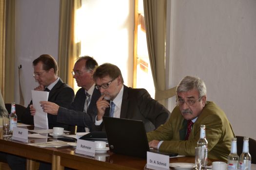 Landrat Martin Wolf verteidigte einen Sitzungssaal im Gebäude, da die Sitzungen in den verschiedensten Orten des Landkreises immer einen hohen Aufwand verursachen würden. So müssten immer wieder freie Säle gesucht werden, die Mitarbeiter und technische Ausrüstung müssten immer voraus reisen, um alles vor- und nachzubereiten. Diesen hohen Aufwand könne man sich sparen, so Wolf. Die abschließende Abstimmung ergab, dass man am Sitzungssaal festhalten werde und eine weitere Variante mit einem 4. Geschoss geprüft werden soll mit vorheriger Einbindung des Denkmalschutzes. Bis Mitte nächsten Jahres soll dann nach Ende der Bürgerbeteiligung die endgültige Planung stehen.