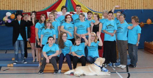 Im Sinne des Inklusionsgedankens begegneten sich ganz selbstverständlich Schüler mit einer geistigen Behinderung und Schüler des Gymnasiums. Ein ganzes Schuljahr lang wurden bei vierzehntägigen Treffen verschiedene Nummern ausgearbeitet und trainiert und dabei Freundschaften geknüpft. Bei Bodenakrobatik, Jonglieren und Tanzen konnten die Schüler ihr Können präsentieren. Auch die Clowns und Zirkushund Odin kamen beim Publikum gut an.