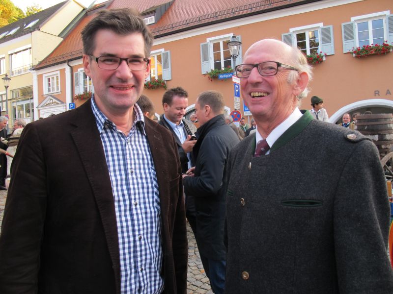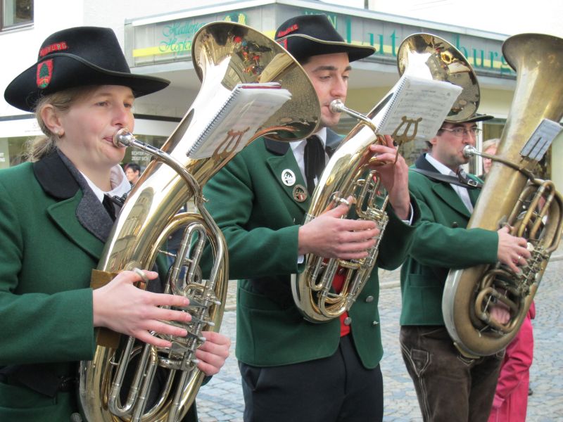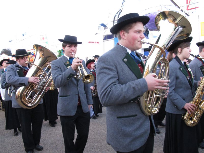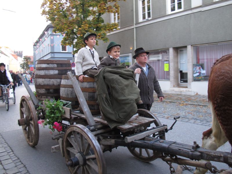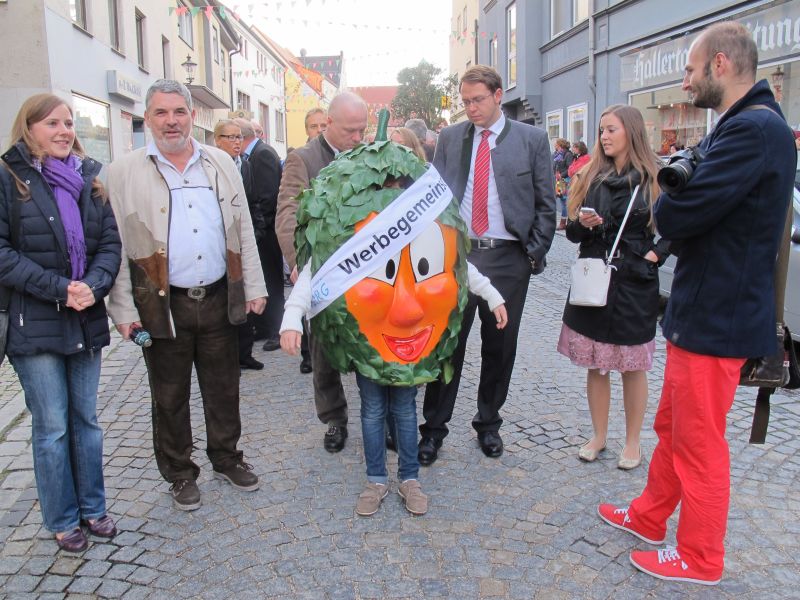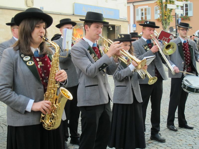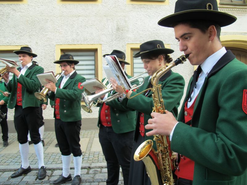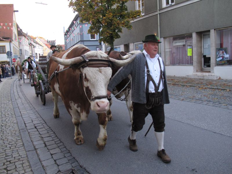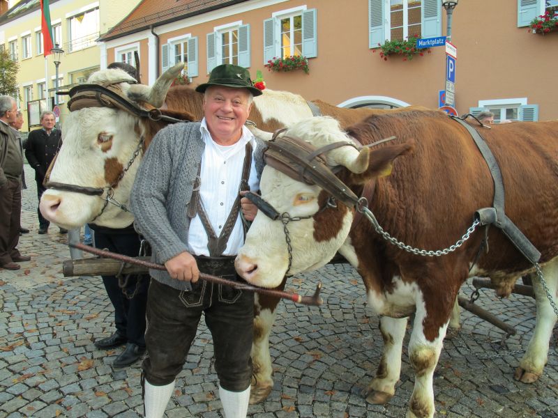 Schon beim Standkonzert auf dem Marktplatz drängten sich hunderte Besucher, um den vielen Blaskapellen zuzuhören und einige ließen sich mit dem Ochsengespann auf einem Foto verewigen.