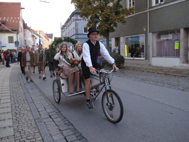 Besonderes Highlight war wieder die Rikscha, mit der sich die beiden Hallertauer Hoheiten durch die klatschende Menge kutschieren ließen. Aber auch „Doldi“, die laufende Hopfendolde sorgte besonders bei den kleinen Zuschauern für große Augen.