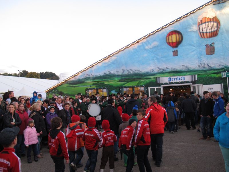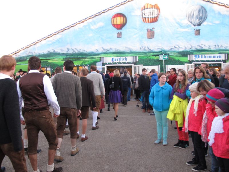 Eine nicht enden wollende Menschenmasse marschierte so durch die Straßen Mainburgs. Ziel war das Widmann Festzelt. Hier konnte man sich erst mal aufwärmen, sich mit den leckeren Schmankerln stärken und sich dann den Bieranstich anschauen.
