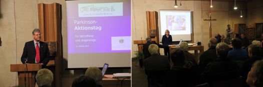Und so zeigte sie schon während des Vortrags, wie man mit einfachsten Mitteln der Schüttelkrankheit entgegen wirken kann. "Ich verteile hier ganz normale Servietten; bitte diese mit einer Hand zusammenknüllen und im Anschluss wieder entfalten. Mit der Serviette winken und sie über dem Kopf von der einen Hand in die andere reichen." Es war beeindruckend mitzuerleben, wie simpelste Übungen vermeintlich beeinträchtigte Abläufe wieder in die Normalität führten.