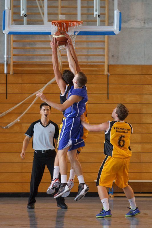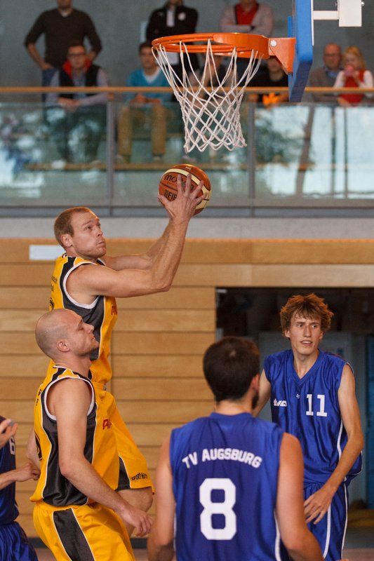 Bebende Trommeln, lautstarke Fangesänge und ein erfolgreiches Spiel. Wer bei diesen Gedanken an Fußball denkt, hat sich schwerwiegend geirrt. Aber das Sonntagsspiel des TSV Wolnzach Basketball gegen den TV Augsburg vergangenen Sonntag konnte man wirklich 1:1 so beschreiben. Trotz der Ausfälle von Sascha Steinbach, Oliver Oberndorfer und Alexander Jureczek bewiesen die Wolnzacher nicht nur Durchhaltevermögen, sondern auch Angriffsstärke und einen temporeichen Charakter. Es waren erst knapp fünf Minuten gespielt, da schnellte der Wolnzacher Punktezähler auf 14 rauf. Der Täter: die Dreierkombi Huber, Eichmüller und Hoffmeister.